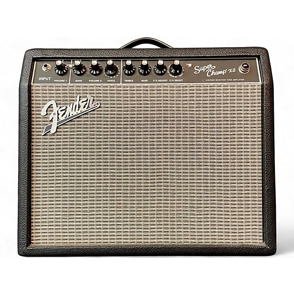 Used Fender Super Champ X2 delivers classic Fender tube tone with modern versatility in a compact 15-watt 1x10 combo. Great condition and ready for stage, studio, or home, it pairs 2x6V6 power tubes and a 12AX7 preamp with 16 amp voices, built-in effects, and an easy-to-use control layout. Includes channel switching and external speaker output, with plenty of punch, sparkle, and dynamic response in a grab-and-go size.
