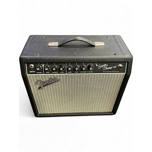 Used Fender Super Champ X2 15W Tube Guitar Combo Amp in good condition, offering classic tube tone with modern versatility. Featuring a 15-watt dual-channel design, it combines a 12AX7 preamp and dual 6V6 power tubes for rich, dynamic sound. The 10" Fender Special Design speaker delivers clear, articulate tones, while built-in effects and amp voicing options expand your sonic possibilities. Perfect for practice, recording, or small gigs with responsive tube warmth.