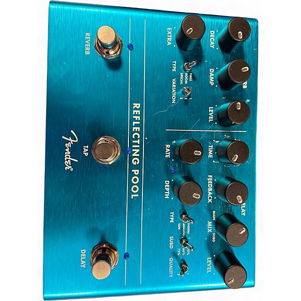 Bring expansive, cinematic ambience to your rig with this used Fender Reflecting Pool effect pedal in great condition. Designed with dual delay and reverb engines, it delivers lush halls, shimmering plates, and rhythmic echoes with intuitive, stage-friendly controls. Simple top-panel knobs and a mode selector make dialing in space fast, while rugged construction keeps it ready for gigging. Standard 1/4" in/out connectivity ensures easy integration with any pedalboard or amp setup.