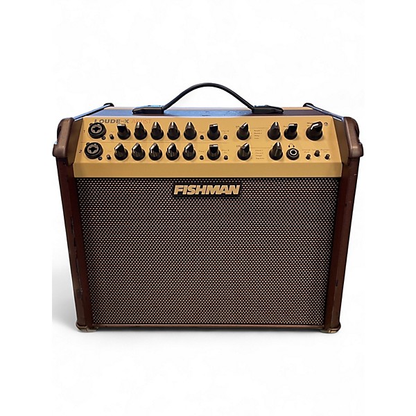 Used Fishman PROLBX600 Loudbox Artist acoustic combo amp in good condition, delivering 120 watts of clean, natural amplification for stage or studio. Dual-channel design lets you plug in acoustic guitar and mic simultaneously, with onboard EQ and effects for quick tone shaping. Features include anti-feedback control, XLR DI output for direct connection to a PA, and a rugged, gig-ready cabinet. A powerful, reliable choice for singer-songwriters and acoustic performers.