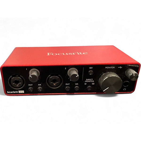Used Focusrite Scarlett 2i2 Gen 3 USB Audio Interface in great condition, offering superior sound with two upgraded Scarlett mic preamps and high-performance 24-bit/192kHz AD/DA converters. Perfect for home studios, it features two combo XLR/line inputs with phantom power, two balanced TRS outputs, and direct monitoring for zero-latency tracking. The rugged metal chassis ensures reliability on the go or at your desk, making this a top choice for musicians, podcasters, and producers alike.