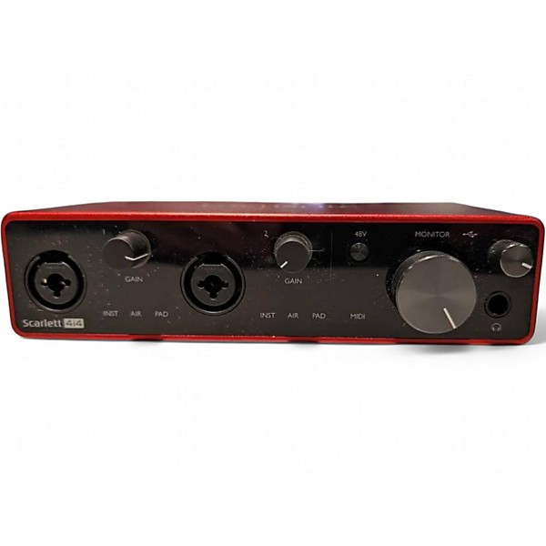 Upgrade your home studio with this used Focusrite Scarlett 4i4 Gen 3 Audio Interface in great condition. Featuring 4 inputs, 4 balanced outputs, two mic/line/instrument preamps with 24-bit/192kHz converters, MIDI I/O, and USB-C connectivity, it delivers top-tier sound and versatility for producers and musicians alike. Compatible with Mac and PC, it's perfect for recording vocals, instruments, or podcasting with reliably clean audio. Experience studio-quality sound in a compact, professional interface.
