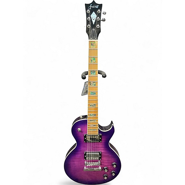 Bring bold style and classic single-cut punch to your rig with this used Fojill Les Paul in a striking Purple Burst finish. In great condition, this solid-body electric delivers warm, sustained tones and smooth playability, ideal for rock, blues, and beyond. Features include a comfortable set-neck feel, dual humbucking pickups, 3-way pickup selector, 2 volume and 2 tone controls, a tune-o-matic style bridge, and 6-in-line tuning stability.
