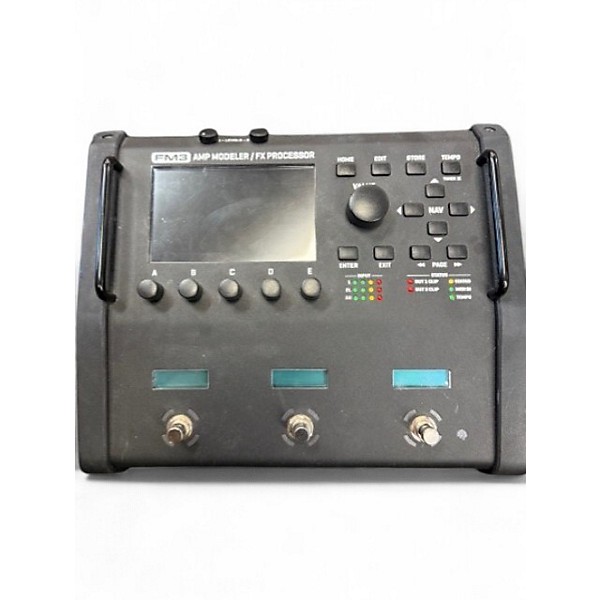 Used Fractal Audio FM3 Amp Modeler/FX Processor in great condition, featuring ultra-realistic amp modeling, over 300 factory presets, and powerful effects derived from the Axe-Fx III. Compact and durable with a 3-core SHARC DSP, it offers flexible routing, a full-color display, and onboard footswitches with LED rings for easy control. Ideal for studio or live use, this rugged floor unit delivers premium tone shaping and performance in a portable design.