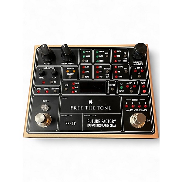 Used Free The Tone Future Factory FF-1Y in excellent condition, delivering studio-grade digital delay with rich ambience and precise control. Enjoy pristine repeats, lush modulation, and versatile modes ranging from clean echoes to wide stereo-style textures. Simple, powerful specs include tap tempo, presets for quick recall, extensive time and feedback controls, and true bypass switching for an uncompromised signal. Built with premium components and robust construction, it’s an inspiring delay centerpiece for any pedalboard.