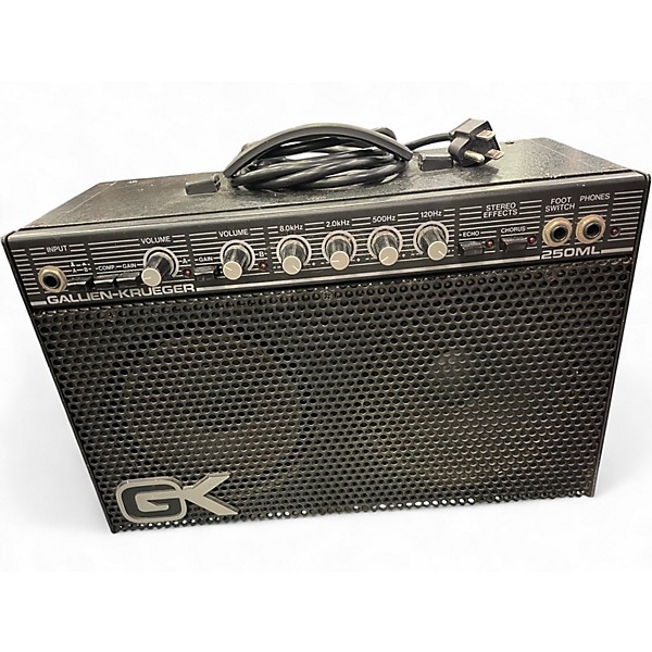 Used Gallien-Krueger 250ML Guitar Combo Amp in Good condition. This compact solid-state amp delivers 100 watts of power through two built-in 6.5" speakers. Known for its crisp, clean tones and built-in stereo chorus and echo effects, the 250ML is a favorite for studio and small gig use. Features include a four-band EQ, headphone output, and speaker outs for expanded setup options. A classic '80s amp with modern versatility and legendary reliability.