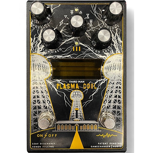 Ignite your tone with this used Gamechanger Audio Third Man Records Plasma Coil, in great condition. This high-voltage distortion pedal uses a xenon tube to create dynamic, touch-sensitive saturation with a unique crackling edge, from gritty overdrive to searing fuzz. Simple controls let you shape drive and output, with quick switching for instant mayhem. Standard 1/4" in/out and 9V DC power make it easy to drop onto any pedalboard.