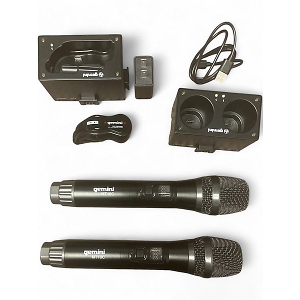 Used Gemini GMU-M200C-ONE handheld wireless system in fair condition, sold as-is with one microphone defective. Features UHF wireless operation for untethered performance and a handheld transmitter designed for clear vocal pickup. Includes receiver with audio output connection for mixers or powered speakers and typical on/off power controls for quick setup. Ideal for parts, repair, or a budget backup solution where one working channel is sufficient.