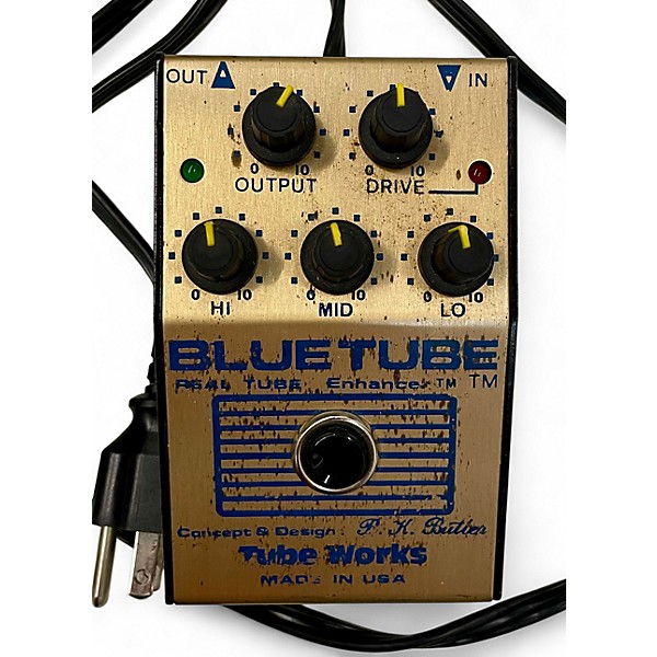 The used Genz Benz BLUE TUBE Real Tube Enhancer delivers warm, rich tone with genuine tube circuitry in a compact stompbox design. This pedal is in good condition and features a 12AX7 preamp tube, gain and output controls, and a tone-shaping EQ for versatile sound enhancement. Perfect for guitarists seeking vintage warmth and modern reliability, it runs on standard 9V power and integrates seamlessly into any pedalboard setup.