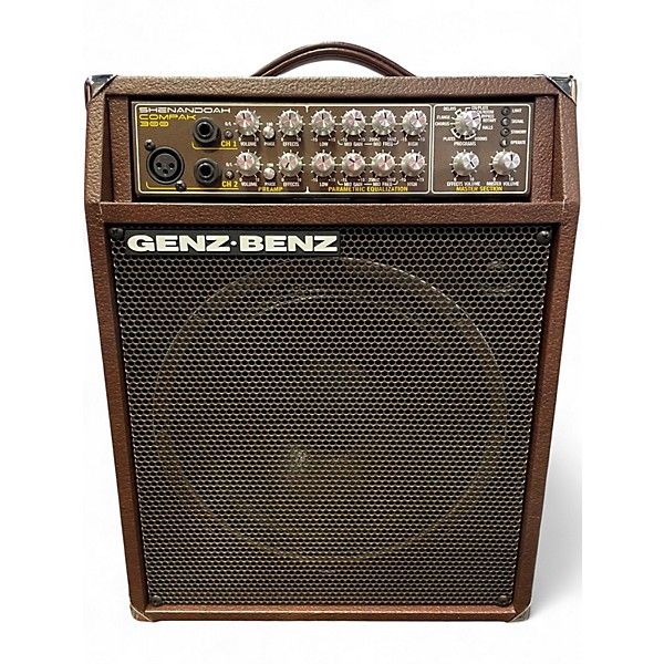 Used Genz Benz Shenandoah Compak 300 Guitar Combo Amp in great condition, built for rich, natural acoustic tone with plenty of clean headroom. This compact combo delivers 300 watts and features dual channels for instrument and microphone, onboard EQ for detailed shaping, and studio-style reverb for added depth. A DI output makes it gig- and stage-ready, while the rugged combo design keeps it easy to transport and dependable night after night.