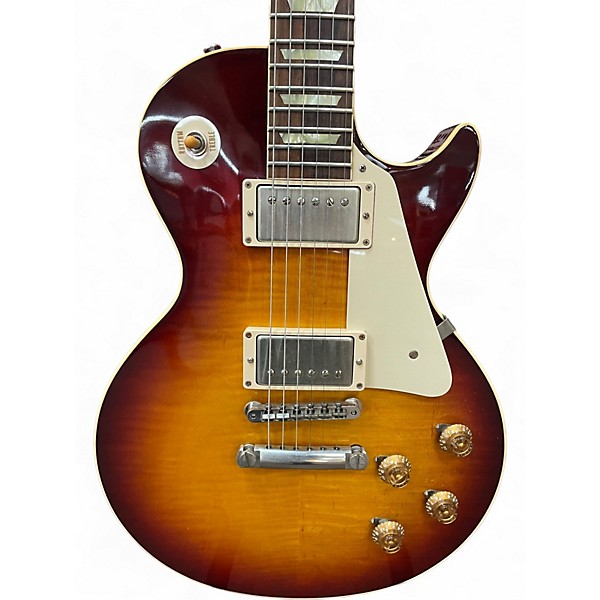 This Used 2014 Gibson LPR9 1959 Les Paul Reissue in Iced Tea Burst finish features a figured maple top, solid mahogany body, '50s-style neck profile, and dual Burstbucker pickups for authentic vintage tone. With a rosewood fingerboard and classic trapezoid inlays, this guitar delivers iconic looks and legendary sustain. In excellent condition, it offers the tone, feel, and craftsmanship of the original '59 Les Paul for collectors and players alike.