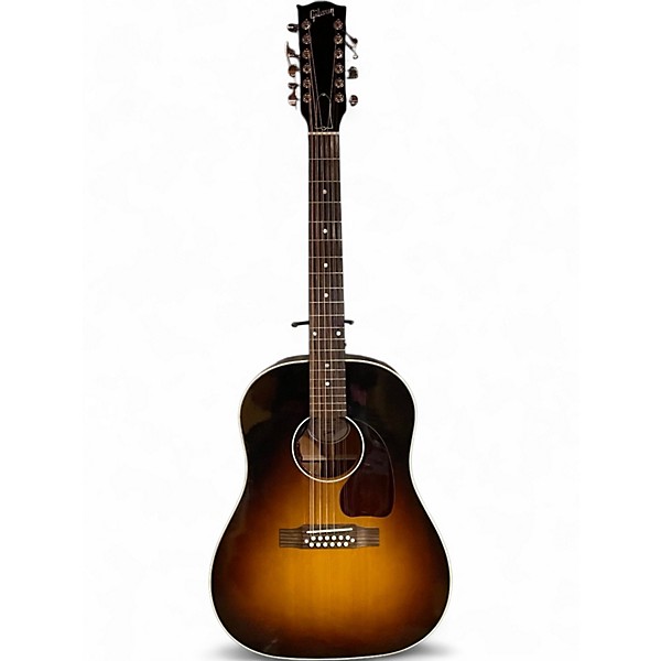 Experience the iconic Gibson sound with this used 2023 Gibson J-45 Standard 12-String in Vintage Sunburst, in great condition. This acoustic-electric delivers rich, chiming 12-string shimmer with the warm, punchy J-45 voice, perfect for strumming, layering, and singer-songwriter work. Features a solid Sitka spruce top with mahogany back and sides, a comfortable round-shoulder dreadnought body, and onboard pickup/preamp for easy stage and studio use.