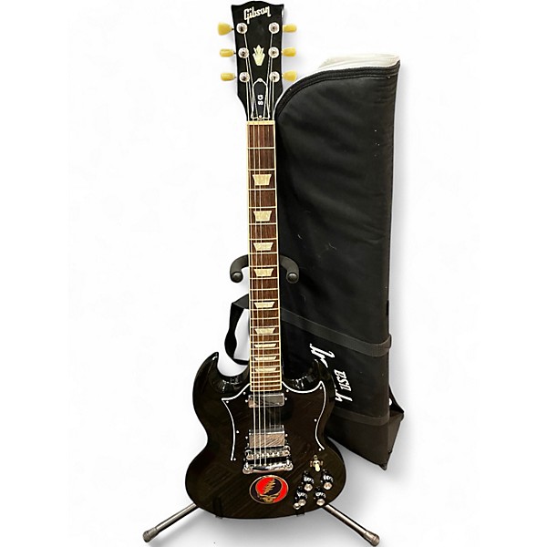 Used Gibson 50th Anniversary SG Standard in Fair condition, featuring a sleek ebony finish and dual humbuckers for classic, powerful tone. Celebrating five decades of SG legacy, this solid body electric guitar offers a fast-playing mahogany neck with a rosewood fretboard and 24 frets for extended range. Some wear and cosmetic blemishes are present, but performance remains uncompromised—ideal for players seeking vintage Gibson tone with modern playability at exceptional value.