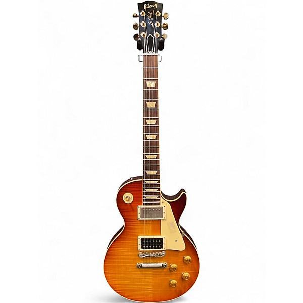 Celebrate classic tone with this Used Gibson 60th Anniversary 1959 Les Paul Standard Reissue in stunning Orange Sunset Fade, in great condition. Built with a solid mahogany body and carved maple top, it delivers rich sustain and vintage punch. A comfortable 1959-style neck and rosewood fingerboard provide effortless playability, while dual humbuckers, a 3-way selector, and independent volume/tone controls cover everything from sweet cleans to roaring rock leads.