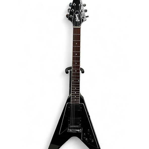 Turn heads with this used Gibson 70’s Flying V Mirror Black, a solid-body electric built for classic rock bite and modern stage impact. In great condition, it delivers bold sustain and fast playability with its iconic V body shape, set neck construction, and 24.75" scale length. Dual humbuckers provide thick, powerful tones, while the Tune-o-matic bridge and stopbar tailpiece keep tuning and intonation solid. A striking, glossy black finish completes the look.