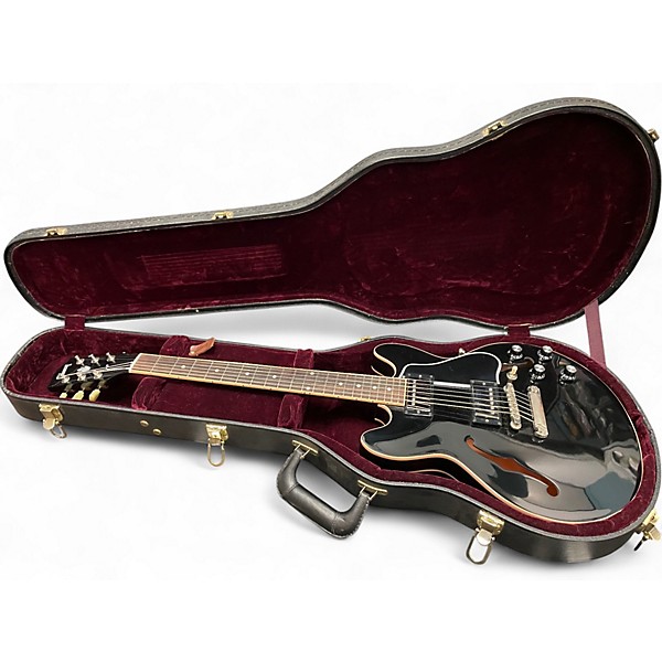 Experience vintage-inspired semi-hollow tone in a compact body with this Used Gibson Custom ES-339 in Ebony, in good condition. Featuring a carved maple top with maple/poplar body, mahogany neck, rosewood fingerboard, dual humbuckers, 2 volume/2 tone controls with 3-way toggle, and a Tune-o-matic bridge with stopbar tailpiece, it delivers warm jazz cleans, punchy blues, and singing rock sustain in a comfortable, stage-ready package.