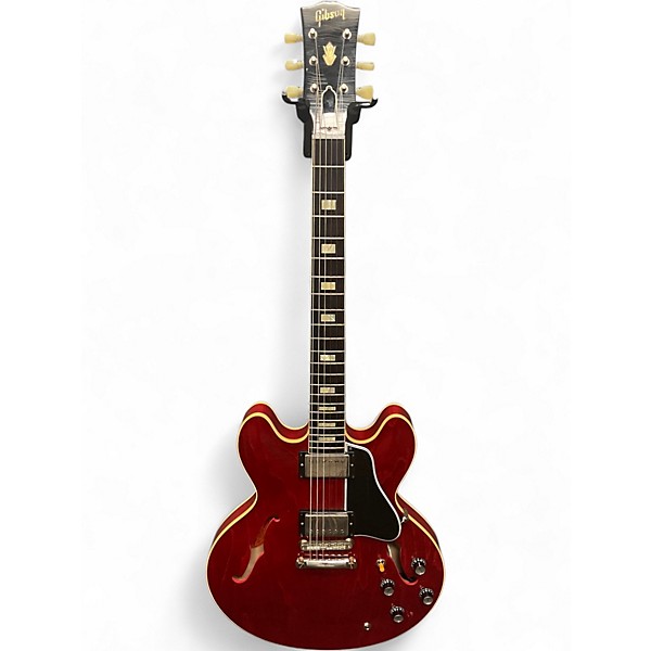 Experience vintage vibe with this Used Gibson Custom Murphy Lab 1964 ES-335 Reissue Ultra-Light Aged in Cherry, in Excellent condition. This hollow/semi-hollow classic delivers airy resonance and punchy sustain with a 1964-style maple/poplar/maple body and a comfortable mahogany neck with rosewood fingerboard. Dual humbuckers provide everything from warm blues to biting rock, while the aged Murphy Lab finish offers authentic, broken-in feel and look.