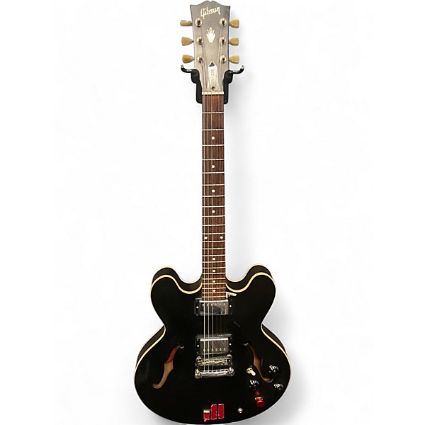 Used Gibson ES-335 Satin Black Hollow Body Electric Guitar in fair condition, featuring a semi-hollow maple body, dual humbuckers, and a mahogany neck with a rosewood fretboard. The classic 24.75" scale length and 22-fret design offer smooth playability with warm, resonant tones. Shows cosmetic wear consistent with use, but fully functional and ready to play. A versatile choice for blues, jazz, or rock players seeking Gibson’s iconic tone at a great value.