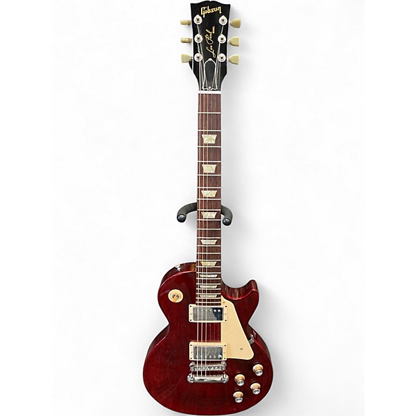 Turn up the tone with this Used Gibson Les Paul Studio in classic Wine Red, a solid-body electric built for punchy rock, blues, and everything between. In good condition with honest playwear, it delivers the thick Les Paul sound from dual humbucking pickups and a set mahogany neck for sustain. Features a carved maple top, 24.75" scale length, 22 frets, Tune-o-matic bridge with stopbar tailpiece, and 2 volume/2 tone controls with 3-way pickup selector.