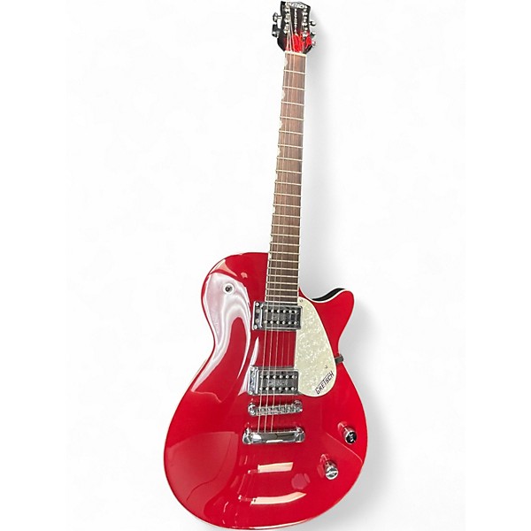 Turn up the tone with this Used Gretsch Electromatic Solid Body Electric Guitar in stunning Wine Red, in great condition and ready to play. Built for punchy rock, blues, and classic Gretsch sparkle, it features a comfortable solid-body design, fast-playing neck, dual pickups for versatile sounds, responsive volume and tone controls, and a smooth-playing tremolo-style bridge and tailpiece setup (model-dependent). A bold look and dependable performance at a great value.
