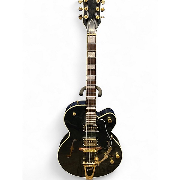 Turn heads with this Used Gretsch G2420T Streamliner in striking green, a full-size hollow body electric in Excellent condition built for bold, resonant tone. It features a laminated maple body with classic f-holes, a comfortable neck, dual humbucking pickups for warm cleans and punchy grit, and a Bigsby-style tremolo for smooth vibrato. The Adjusto-Matic bridge and reliable controls deliver easy playability and vintage-inspired Gretsch style.