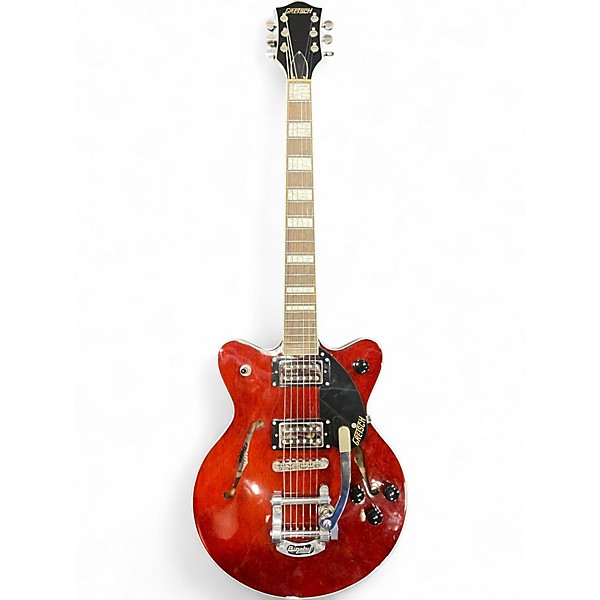This used Gretsch G2655T Streamliner in Walnut Stain delivers classic tone and vintage style with a semi-hollow body, Broad’Tron humbuckers, and Bigsby B50 vibrato tailpiece. Featuring a lightweight center block design, 22 medium jumbo frets, and a bound nato neck with laurel fingerboard, it’s built for smooth playability and bold sound. In good condition with some signs of use, this guitar is a great choice for players seeking Gretsch character at an affordable price.