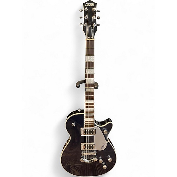 Experience classic Gretsch tone with this used G5220 Electromatic Jet in stunning Jade Grey Metallic. Featuring a chambered mahogany body, maple top, and set mahogany neck with a 22-fret laurel fingerboard, it delivers exceptional resonance and sustain. Dual Black Top Broad'Tron humbuckers provide a powerful, articulate sound. This hollow body electric guitar is in great condition, perfect for players seeking vintage style with modern playability and performance.