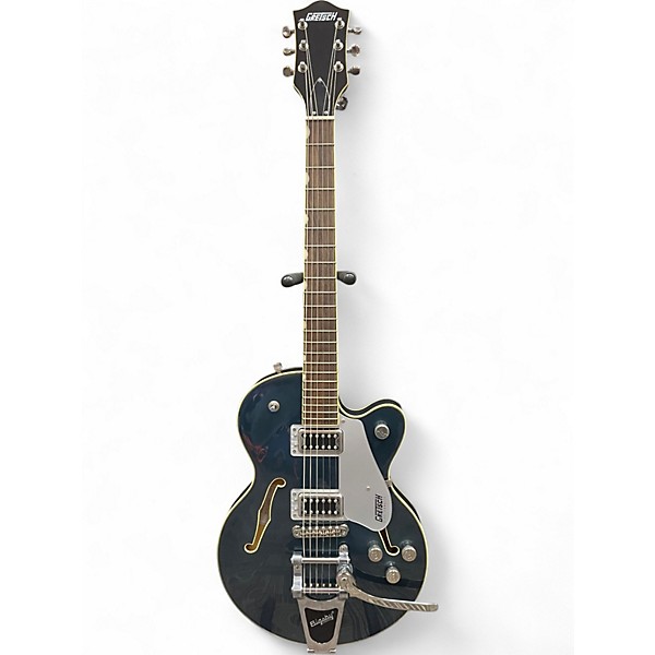 Turn heads with this used Gretsch G5655T-CB-JR in striking Cobalt Blue, a compact hollow body electric built for big tone. In great condition, it pairs airy resonance with punchy clarity from dual humbucking pickups, and its Bigsby-style tremolo adds smooth vibrato for rockabilly, blues, and indie textures. The comfortable short-scale feel and slim body make it easy to play for long sessions while delivering classic Gretsch style and sustain.