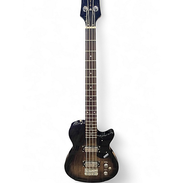 Used Gretsch Electromatic Black Electric Bass Guitar in Good condition, featuring a sleek black finish, classic single-cutaway hollow body design, and dual "Black Top" Filter'Tron pickups for punchy, dynamic tone. It has a 4-string setup with a maple neck and rosewood fingerboard, offering comfortable playability and smooth action. With its vintage-inspired styling and reliable performance, this bass is perfect for players seeking distinctive sound and style at an excellent value. There were scratches on the back of the guitar.