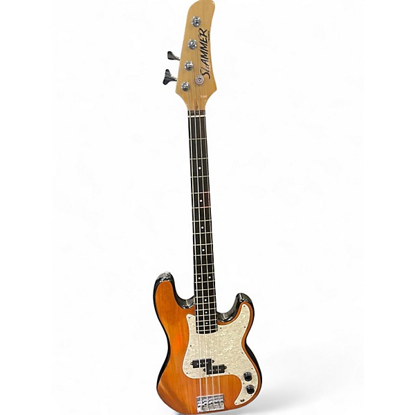 Discover classic Hamer style with this used SLAMMER Natural electric bass guitar in good condition. Featuring a natural finish, solid-body construction, comfortable bolt-on neck, and a versatile dual-pickup setup with straightforward volume and tone controls, it delivers punchy lows and clear definition for rock, pop, and funk. A sturdy fixed bridge helps keep intonation steady, while the smooth neck profile makes long sessions easy. A dependable, great-sounding bass at a smart value.
