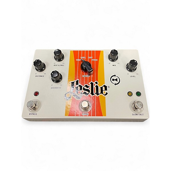 Bring authentic Hammond-style rotary speaker swirl to your rig with this used Leslie effect pedal in great condition. Dial in lush chorale-to-fast tremolo, rich modulation depth, and smooth drive for everything from vintage soul to modern rock. Simple, stage-ready controls let you shape speed and intensity on the fly, while standard 1/4" input/output connections integrate easily with guitars, keys, or effects chains. Powered by a typical 9V supply for easy pedalboard use.