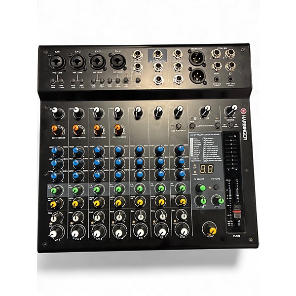 Used Harbinger LX12 Digital Mixer in excellent condition, featuring 12 channels with high-quality preamps, built-in DSP effects, and 3-band EQ per channel for precise sound control. Offers both XLR and 1/4" inputs, balanced main outputs, and an intuitive interface ideal for live and studio use. USB connectivity allows for easy recording and playback, making it a versatile choice for musicians, audio engineers, and performers. Clean, fully functional, and ready to elevate your audio setup.