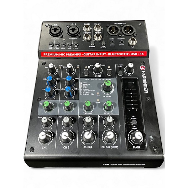 Used Harbinger LX8 Unpowered Mixer in great condition, featuring 8 channels with mic preamps, balanced XLR and 1/4" inputs, 2-band EQ per channel, and master level control. Ideal for small live performances, rehearsals, or podcast setups, this compact mixer delivers clear, reliable sound and easy operation in a durable design. With its intuitive layout and rugged build, the LX8 is perfect for musicians and audio enthusiasts who need a versatile mixing solution at an affordable price.