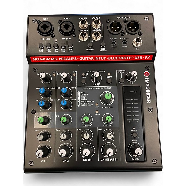 Take command of your live sound with this Used Harbinger LX8 Unpowered Mixer in excellent condition, a compact, dependable solution for rehearsals, small gigs, and streaming setups. The LX8 offers 8-channel mixing, multiple mic/line inputs, built-in EQ for shaping vocals and instruments, and flexible main/control room outputs for easy routing and monitoring. Smooth faders and intuitive controls make quick adjustments simple, delivering clean, clear mixes in a rugged desktop-friendly design.