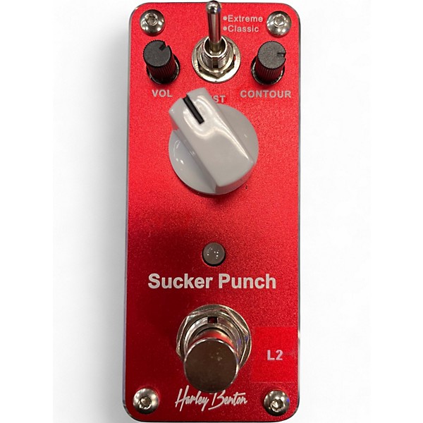 Used in excellent condition, the HARLEY BENTON SUCKER PUNCH distortion pedal delivers aggressive, high-gain tones perfect for hard rock and metal. Featuring intuitive controls for Gain, Level, and Tone, it offers powerful sound shaping in a compact design. True bypass switching ensures your tone stays pure when disengaged. Built to last with a rugged metal chassis, this pedal brings punchy distortion and reliable performance at an affordable price. Ideal for players seeking raw, cutting edge tones.