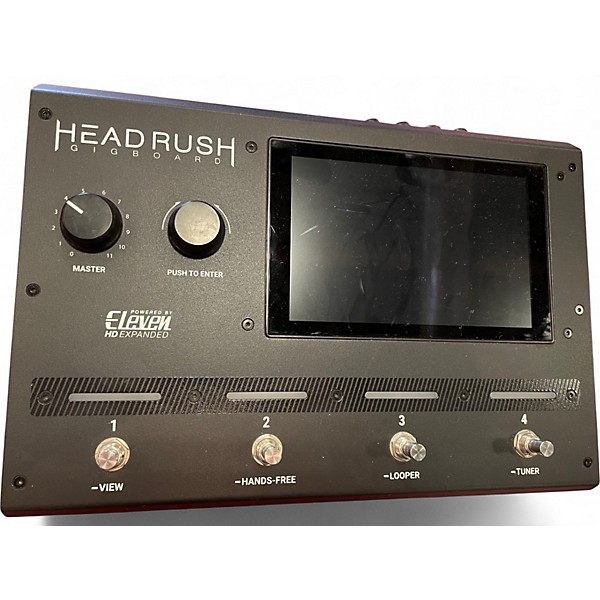 Used HeadRush Gigboard in great condition, offering powerful amp modeling and FX in a compact 7-inch touchscreen unit. Features quad-core processing, custom IR loading, 4 footswitches with OLED displays, and versatile I/O for guitars, FRFRs, and recording setups. Built for tone-sculpting flexibility, this unit delivers high-quality sound, intuitive navigation, and seamless rig integration—perfect for stage or studio use. Save big on professional-grade performance with this reliable, all-in-one effects and amp modeler.