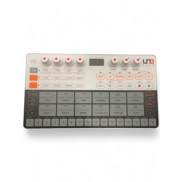 Used IK Multimedia UNO Drum Machine in good condition—an ultra-portable analog groovebox built for punchy beats and fast workflow. It features 100% analog sound generation, a 16-step sequencer, multiple drum voices, and onboard effects for shaping kicks, snares, and hats with character. Hands-on controls make programming quick, while its compact design fits easily into any studio or live rig. A solid choice for warm, classic drum textures.