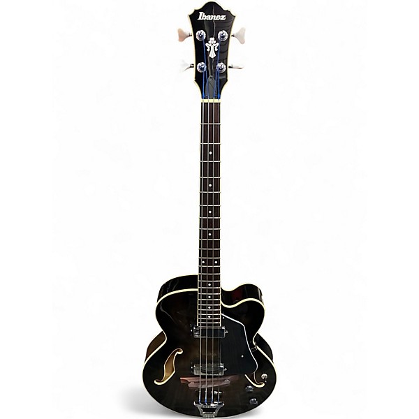Used Ibanez AFB200 Trans Grey electric bass in excellent condition, delivering warm, woody hollowbody tone with modern playability. This 4-string features a full hollow body with a sleek translucent grey finish, dual humbucking pickups for rich lows and punchy mids, and straightforward volume/tone controls for quick shaping. A comfortable maple neck and smooth rosewood fingerboard make it ideal for jazz, blues, indie, and studio work where big, resonant bass is a must.