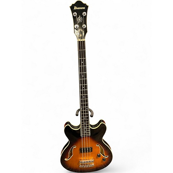 Used Ibanez ASB140 in 2 Color Sunburst delivers rich tones with its semi-hollow body and dual humbucking pickups, ideal for versatile bass styles. Featuring a 34" scale maple neck, rosewood fingerboard, and dot inlays, this bass is both comfortable and stylish. In great condition, it offers smooth playability and warm, resonant sound that's perfect for stage or studio. A reliable, eye-catching choice for any musician seeking vintage flair and modern performance.