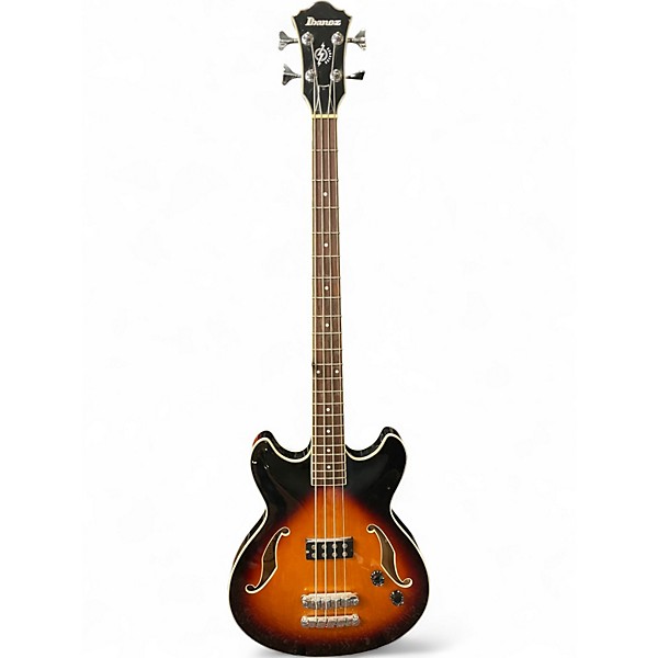 Used Ibanez ASB140 Electric Bass in eye-catching 2 Color Sunburst finish, in Good condition with minor cosmetic wear. This semi-hollow body bass features a mahogany set neck, maple top/back/sides, and dual humbucking pickups for deep, warm tones. The 34" scale length and rosewood fingerboard offer smooth playability and responsive feel. Perfect for jazz, blues, or rock players seeking vintage style with modern reliability. A solid choice for stage or studio use.