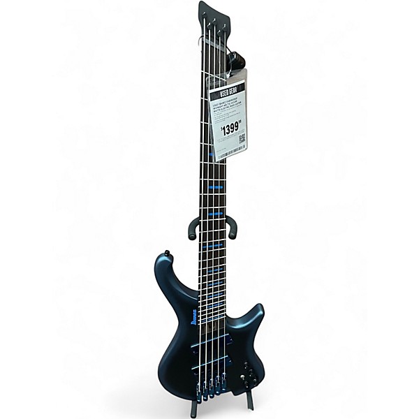 Explore modern tone and effortless playability with this used Ibanez EHB5MSBSP in Midnight Arctic Ocean Matte, in great condition. This headless 5-string multiscale bass pairs a fast roasted maple neck with a comfortable ergonomic body for balanced, lightweight performance. Dual Bartolini pickups and active EQ deliver punchy lows, articulate mids, and crisp highs for any genre, while the multiscale design keeps the B string tight and defined across the fretboard.
