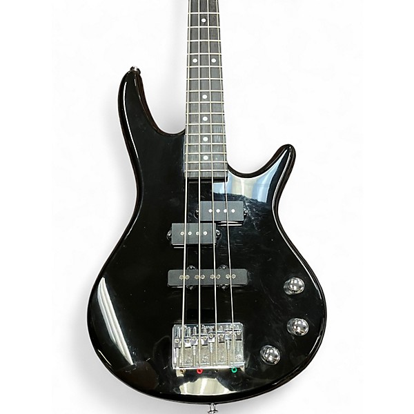 Used Ibanez GSRM20 Mikro Short Scale Bass in sleek black, in good condition with light cosmetic wear and smooth playability. The compact 28.6" short-scale neck makes it ideal for younger players, guitarists doubling on bass, or anyone wanting an easy, comfortable reach. Features a solid poplar body, maple neck, jatoba fingerboard, P/J pickup configuration with volume and tone controls, and a 4-saddle bridge for stable tuning and intonation. Great punchy tone in a travel-friendly size.