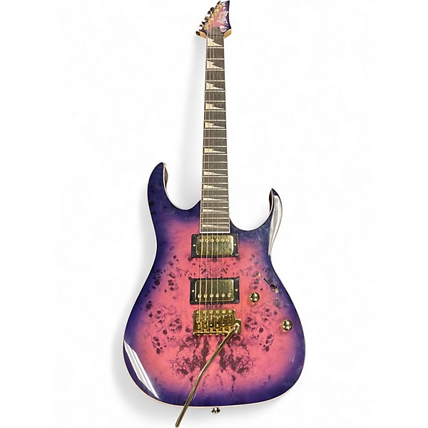 Used Ibanez GRG220PA in stunning Transparent Purple Burst, this solid body electric guitar is in great condition with minimal wear. Featuring a poplar burl art grain top, a fast maple neck, bound purpleheart fingerboard with 24 medium frets, and dual humbucking Infinity pickups, it delivers powerful tone and comfortable playability. The fixed bridge ensures tuning stability, making it ideal for rock and metal players looking for performance and style at an incredible value.