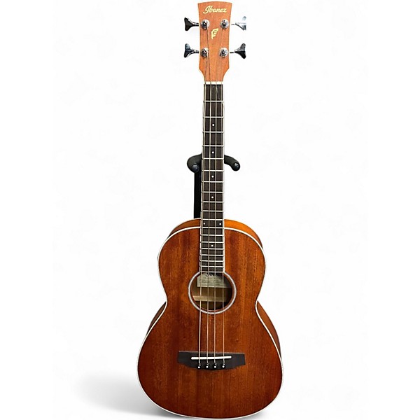Used IBANEZ PNB14E Natural Acoustic Bass Guitar in great condition, featuring a compact parlor body, mahogany top, back, and sides, with a comfortable short-scale 24.75" neck for easy playability. The open pore natural finish enhances its warm, rich tone. Equipped with an Ibanez AEQ-2T preamp and built-in tuner, this electro-acoustic bass is perfect for both unplugged sessions and amplified gigs, delivering deep, punchy sound in a lightweight and stylish design.