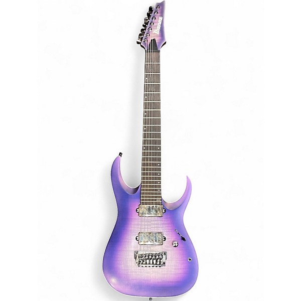 Used Ibanez RGA71AL Axion Label 7 String Electric Guitar in Good condition, featuring a sleek Purple finish and solid Nyatoh body for bold tone. Equipped with a 5-piece Nitro Wizard-7 neck, Macassar ebony fretboard, and Fishman Fluence Modern pickups for versatile sound, this guitar offers aggressive playability and modern aesthetics. The 27-inch scale length and sleek body contours make it perfect for extended range players seeking performance and style in one compelling package.