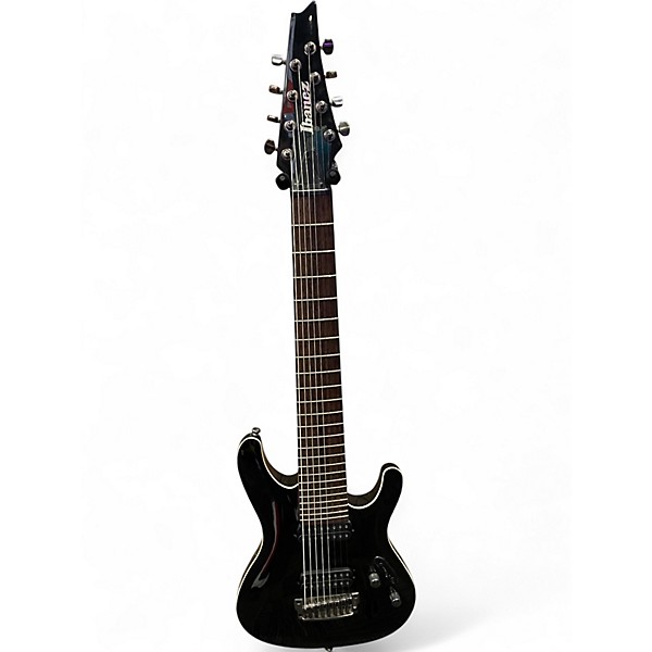 Used Ibanez SIR28FD Iron Label 8 String Electric Guitar in Metallic Gray, featuring a solid mahogany body, maple/walnut neck-through construction, and 24 jumbo frets on a bound rosewood fingerboard. Equipped with EMG 808 active pickups for crushing tone and a Gibraltar Standard II-8 bridge for enhanced sustain and stability, this guitar is built for extreme metal and precision play. In great condition, it's a powerful addition for any serious 8-string guitarist.