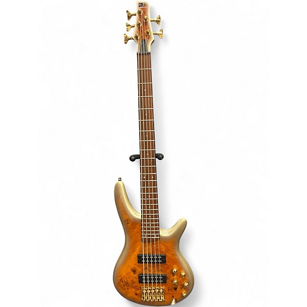 Used IBANEZ SR405EPBDX in stunning Mars Gold finish, this 5-string electric bass guitar is in great condition and delivers powerful tone with its dual PowerSpan humbucking pickups and 3-band EQ. Featuring a poplar burl top, nyatoh body, and a fast 5-piece maple/walnut neck with jatoba fingerboard, it offers smooth playability and a bold modern look. Ideal for players seeking versatility and punch in their performance.