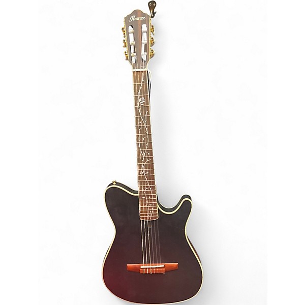 Used Ibanez TOD10N Tim Henson Signature in Flat Black, in great condition, blends classical feel with modern stage-ready performance. This nylon-string, thinline acoustic-electric features a comfortable slim neck, smooth cutaway access, and a built-in pickup/preamp for easy plug-in tone. The clean, fast-playing design delivers warm, articulate response for fingerstyle, pop, and contemporary classical, making it a versatile choice for studio or live use.