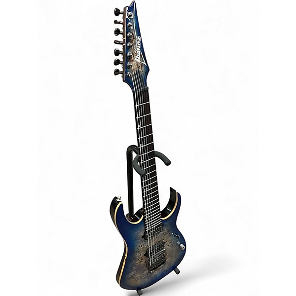 The used Ibanez RG1027PBF in Blue Burst delivers stunning visuals and powerful tone with a poplar burl top on an American basswood body. This solid body 7-string guitar features a 27" scale length, Wizard-7 neck for fast playability, and DiMarzio Fusion Edge pickups for aggressive, articulate sound. In great condition, it offers exceptional performance for modern rock and metal players seeking extended range and precise articulation.