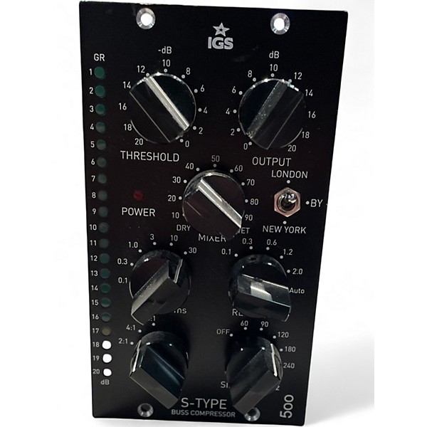 Used IGS S TYPE BUSS Compressor in great condition, delivering classic SSL-style VCA bus compression for tight, punchy mixes and glued masters. Features stereo operation, threshold, ratio, attack, release, and makeup gain controls plus a selectable high-pass filter in the sidechain to keep low end solid. Built for clean, low-noise performance with balanced XLR I/O and standard rackmount form factor—ideal for mix bus, drums, and subgroup compression.